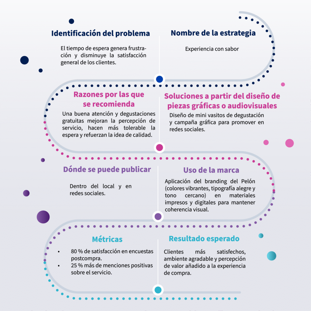 Es una estrategia enfocada en agilizar la producción y simplificar la elección del cliente mediante la creación de cinco combos predefinidos con las combinaciones más populares. Esto permite optimizar tiempos de preparación, mantener consistencia en las porciones y facilitar la decisión de compra, especialmente durante las horas de mayor demanda.
